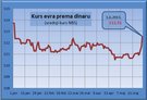 Srpska valuta će u ponedeljak biti 1,7 odsto slabija prema evru nego pre mesec dana, a za 4,2 odsto jača nego pre godinu dana.